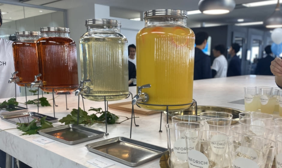 ドリンクケータリング自然な造りのワインからオリジナルカクテル、展示会用のお茶やドリップコーヒーまで、お客様のご要望に合わせてドリンクをご用意いたします。