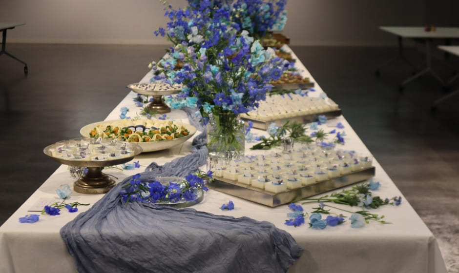 会場にスタッフが伺い、テーブルの装飾やお料理の盛り付けまで行います。